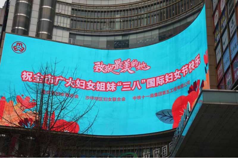 電子屏幕展示“致敬最美的她”宣傳畫面(于玲玲攝)