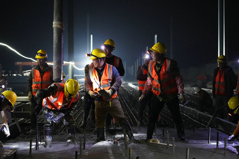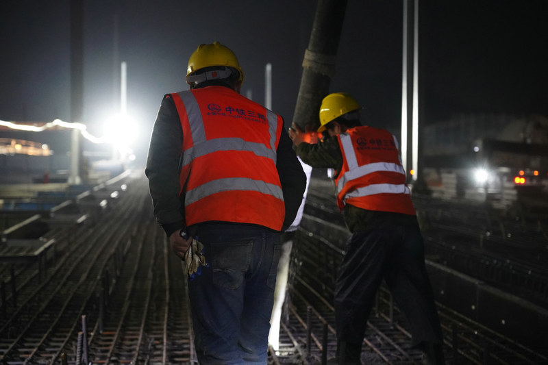高速鐵路無(wú)砟道岔主要是列車(chē)轉(zhuǎn)線的重要設(shè)備,具有精度高、施工難度大的特點(diǎn),本次完成澆筑的楊家塝線路所2#道岔為全線的首件工程,項(xiàng)目部積極組織策劃嚴(yán)格把控落實(shí)日進(jìn)度指標(biāo),對(duì)施工任務(wù)統(tǒng)籌調(diào)度、細(xì)化分工,現(xiàn)場(chǎng)設(shè)置專(zhuān)人盯控施工進(jìn)度,設(shè)備、人員、儀器緊密銜接,保障無(wú)砟道岔施工有序進(jìn)行。(毛江 王薪雅)