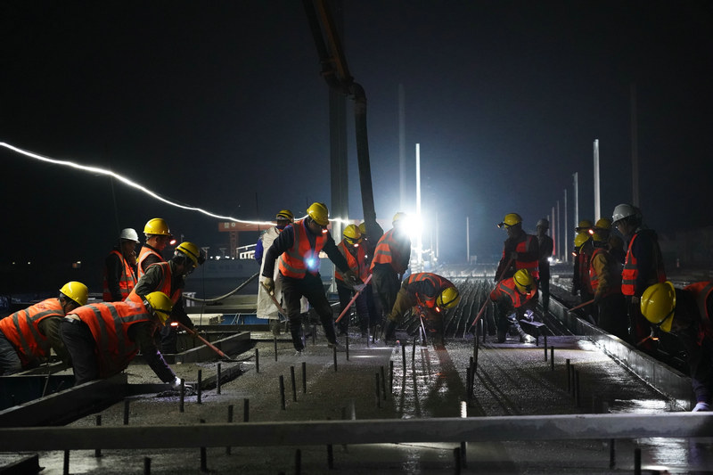 2024年3月10日19時(shí),在宜興高鐵聯(lián)絡(luò)線楊家塝線路所施工現(xiàn)場(chǎng),隨著2號(hào)道岔底座混凝土開(kāi)始澆筑,標(biāo)志著全線首組高速無(wú)砟道岔拉開(kāi)序幕,工程建設(shè)進(jìn)入到了軌道施工的新階段。