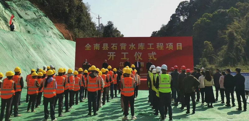 3月20日上午,由中鐵二十一局四公司承建的全南縣石背水庫工程舉行開工儀式。全南縣副縣長肖進林出席儀式,縣水利局局長鐘春敏主持開工儀式,水利局副局長陳裕民代表建設單位發(fā)言,中鐵二十一局四公司運管部副部長陳朝勃代表施工單位作表態(tài)發(fā)言。全南縣發(fā)改委、水利局、社逕鄉(xiāng)等有關單位負責人、監(jiān)理單位及施工單位共60余人參加開工儀式。