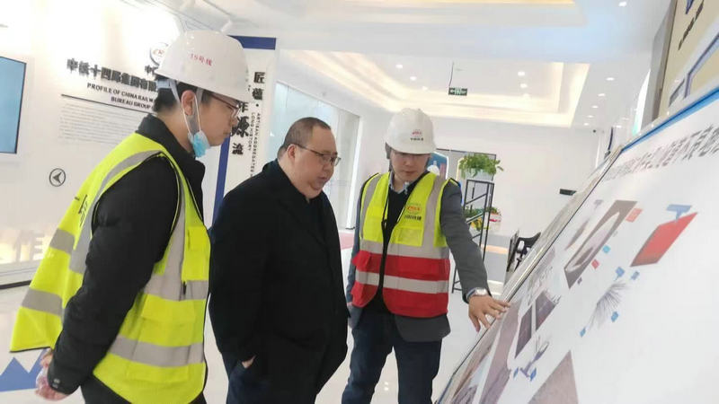 總承包部指揮長(zhǎng)李兵(中)在現(xiàn)場(chǎng)進(jìn)行安全、質(zhì)量督導(dǎo)檢查