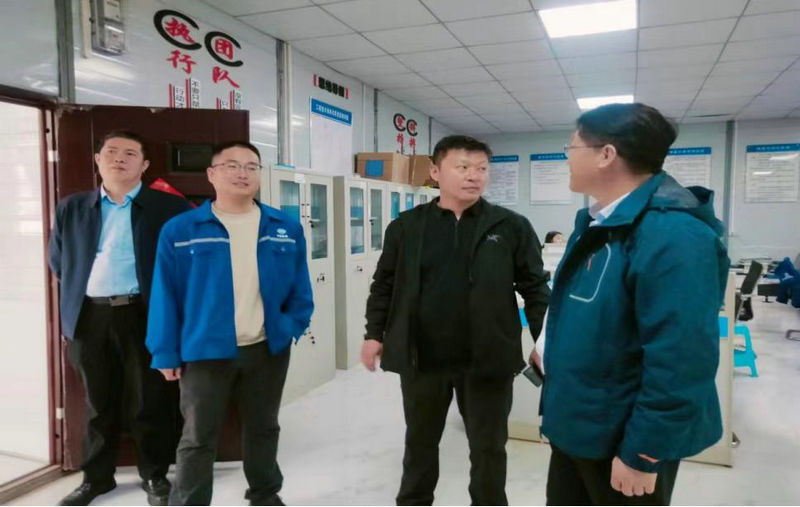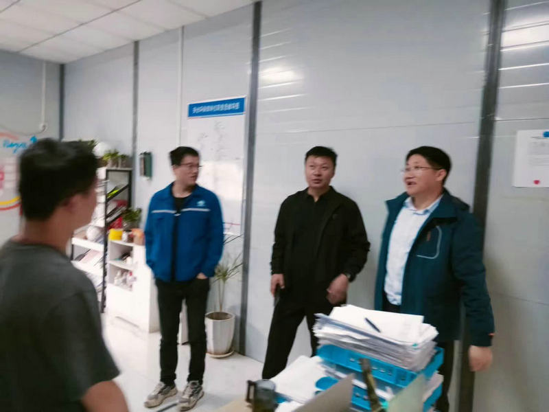 公司副總經(jīng)理李洪江(右2)、工會(huì)副主席張泉濱(右1)在工程技術(shù)質(zhì)量部檢查文化墻創(chuàng)新運(yùn)作情況