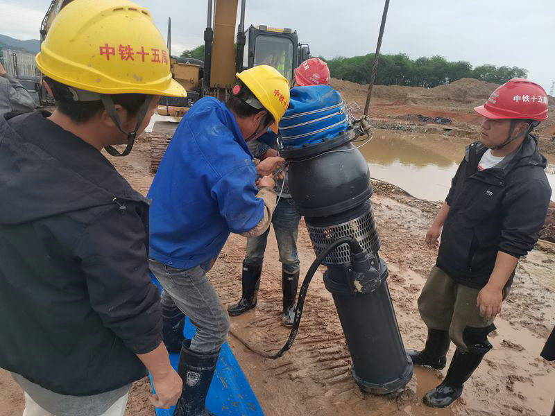 安裝大型泥漿泵 林茂輝攝與此同時(shí),項(xiàng)目部購(gòu)置了沙袋、繩索、鋼管、鐵鍬、泥漿泵、雨鞋雨衣、手電等一批搶險(xiǎn)物資,并指定所屬施工隊(duì)的挖掘機(jī)、鏟車、自卸車為搶險(xiǎn)備用機(jī)械設(shè)備。其次,他們成立了一個(gè)由項(xiàng)目經(jīng)理為組長(zhǎng)、執(zhí)行經(jīng)理陳良兵等班子其他人員,各部門負(fù)責(zé)人、施工隊(duì)負(fù)責(zé)人為副組長(zhǎng)或成員的防汛抗洪領(lǐng)導(dǎo)小組和一支由40名身強(qiáng)力壯員工組成的抗洪搶險(xiǎn)突擊隊(duì)。此外密切關(guān)注氣象部門預(yù)警,并組織人員和機(jī)械加高加寬400多米長(zhǎng)的江堤,24小時(shí)派人值班觀察水位變化。
