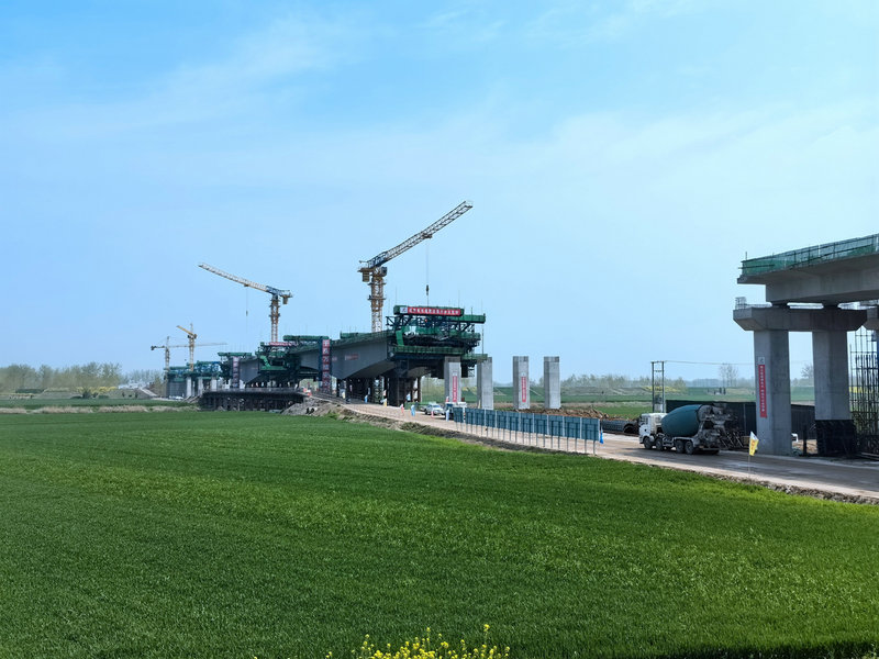 “自復工以來,項目部投入機械設備70余臺,組織7個施工班組共計280余人,倒排工期、掛圖作戰(zhàn),搶抓汛期前‘黃金施工期’,全力加快推進項目建設。為確保新汴河特大橋施工節(jié)點目標順利完成,項目團隊迎難而上,統(tǒng)籌優(yōu)化工序,抓好工藝銜接,強化過程管控,科學組織施工,安全有序推進,為大橋‘全面合龍’打好堅實基礎”。兵團交建公司宿固TJ02合同段項目經理劉雄說道。