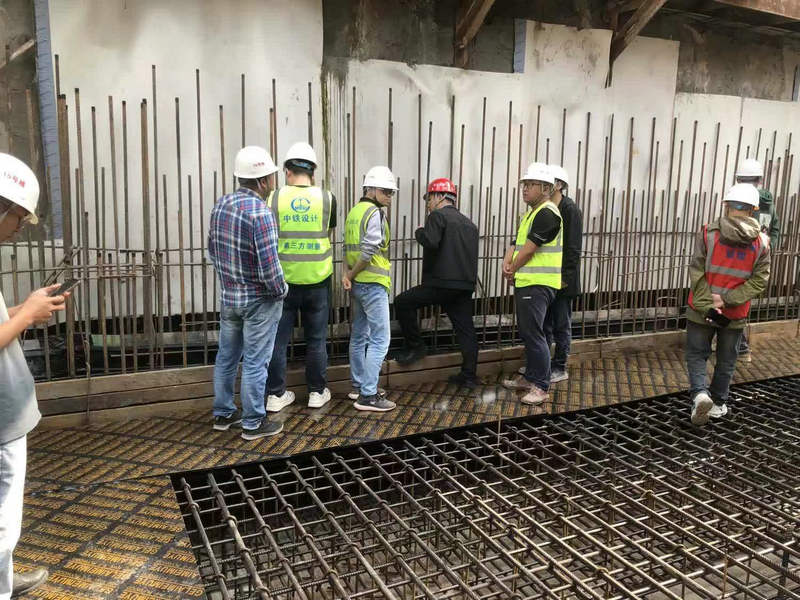 驗(yàn)收小組首先集體踏勘了禮學(xué)路站2號(hào)出入口底板施工現(xiàn)場(chǎng),對(duì)底板鋼筋、模板、混凝土、防水等分項(xiàng)工程內(nèi)容進(jìn)行現(xiàn)場(chǎng)核查驗(yàn)收。