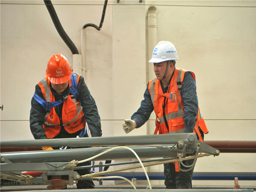 張明亮則站在一旁,不時(shí)地給出一些指導(dǎo)和建議,時(shí)而點(diǎn)頭肯定,時(shí)而眉頭微皺,提醒徒弟注意測(cè)量的關(guān)鍵步驟。他的目光始終不離王廣陸的每一個(gè)動(dòng)作,仿佛在默默評(píng)估著徒弟檢修技能的掌握情況。