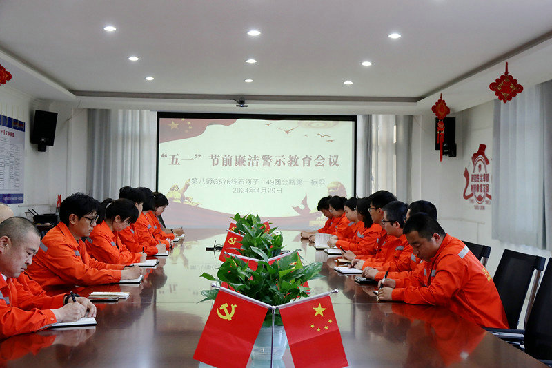 2024年4月29日,根據(jù)北新路橋集團(tuán)兵團(tuán)交建公司紀(jì)委工作部署要求,第八師G576線石河子-149團(tuán)公路工程第一合同段項(xiàng)目組織全體員工召開“五一”節(jié)前廉潔警示教育會(huì)議。