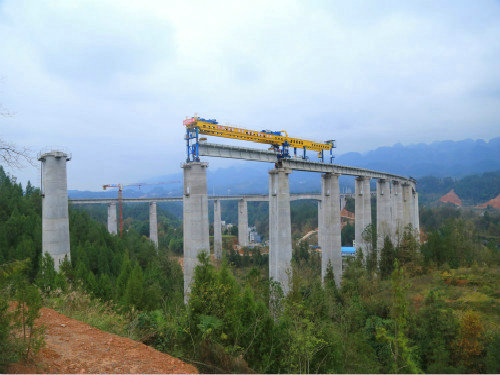 據(jù)項(xiàng)目負(fù)責(zé)人介紹,該項(xiàng)目所承擔(dān)的鋪軌架橋任務(wù)完全不同于地勢(shì)平坦的平原區(qū)段。武陵山區(qū)地形條件復(fù)雜,常年大霧彌漫,墩臺(tái)普遍偏高,橋梁分散,且部分橋體橫跨渝東南地區(qū)的鄉(xiāng)村及便道,無(wú)形之間給橋梁運(yùn)輸和架設(shè)工作帶來(lái)了重重困難。
