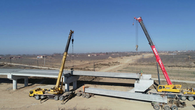 冬季的西北,夾雜著風(fēng)沙的寒風(fēng)猖獗的吹著,但甜永TY13標(biāo)施工現(xiàn)場(chǎng)卻呈現(xiàn)出一片熱火朝天的忙碌景象,現(xiàn)場(chǎng)技術(shù)管理人員扛著儀器、喊著話,奔跑在各個(gè)作業(yè)點(diǎn);現(xiàn)場(chǎng)施工人員持著工具、貓著身,穿梭于腳手架的空當(dāng);樁基、墩柱、架梁、箱梁預(yù)制等各施工作業(yè)面有條不紊地進(jìn)行著。11月11日,甜永高速TY13標(biāo)K187+340車(chē)行天橋架梁順利合龍,為該標(biāo)段的冬季施工開(kāi)出了好彩頭。12月14日,甜永項(xiàng)目部AK0+450高樓互通A匝道通道橋梁板架設(shè)開(kāi)始,拉開(kāi)了甜永高速TY13標(biāo)段高樓互通區(qū)橋梁施工序幕,這是甜永項(xiàng)目部繼K187+340車(chē)行天橋后第二座進(jìn)行架梁施工的橋梁。高樓互通立交是為解決高樓塬、定祥塬沿線鄉(xiāng)鎮(zhèn)車(chē)輛出入高速,國(guó)道309南北向交通流快速轉(zhuǎn)換而設(shè)置,該立交對(duì)于局部路網(wǎng)交通流的合理分布以及溝通沿線城鎮(zhèn),充分吸引交通量,發(fā)揮道路最佳效益,促進(jìn)沿線區(qū)域經(jīng)濟(jì)發(fā)展十分重要。12月15日,甜永項(xiàng)目部MK189+480車(chē)行天橋橋梁板架設(shè)正式開(kāi)始,這是甜永項(xiàng)目部第三座進(jìn)行架梁施工的橋梁。這三座橋梁的架設(shè)完成標(biāo)志著甜永TY13標(biāo)施工重要節(jié)點(diǎn)及冬季施工節(jié)點(diǎn)的順利兌現(xiàn)。
