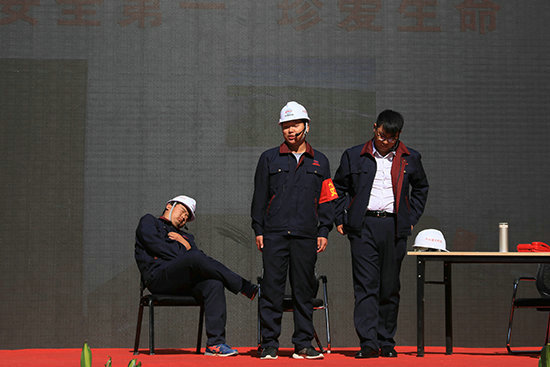 圖四、福廈鐵路項目部表演小品《安全帽》;