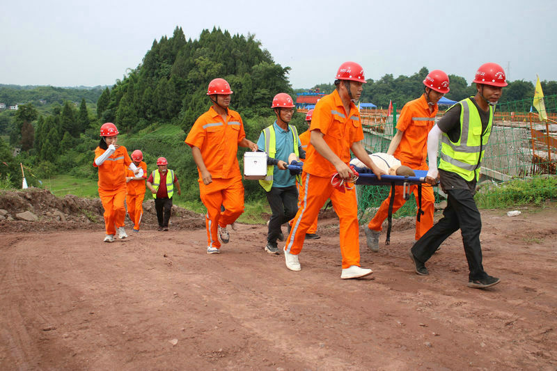 上午10時(shí),應(yīng)急救援演練正式開始:正在萬福大橋橋面鋪裝臨邊作業(yè)的一名“工人”不慎摔下8米高的橋底,“不好啦,有人掉下去了”,工友大聲呼喊,現(xiàn)場安全員和班組長迅速到達(dá)出事地點(diǎn)查看“傷情”,并立即撥打120電話及時(shí)報(bào)告項(xiàng)目經(jīng)理。“馬上啟動(dòng)項(xiàng)目應(yīng)急預(yù)案,各應(yīng)急小組立即趕往事故現(xiàn)場”,項(xiàng)目經(jīng)理接到電話后立即作出救援部署,隨后帶領(lǐng)醫(yī)療救護(hù)組、安全保衛(wèi)組、技術(shù)保障組和疏散引導(dǎo)組小組人員,迅速趕往事故現(xiàn)場開展“傷員”救護(hù)、工人疏散、外圍警戒、現(xiàn)場清理等工作,并協(xié)助120救護(hù)車轉(zhuǎn)送“傷員”至就近醫(yī)院......,整個(gè)演練過程持續(xù)約40分鐘,按照應(yīng)急預(yù)案有序推演,演練取得了圓滿成功。