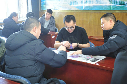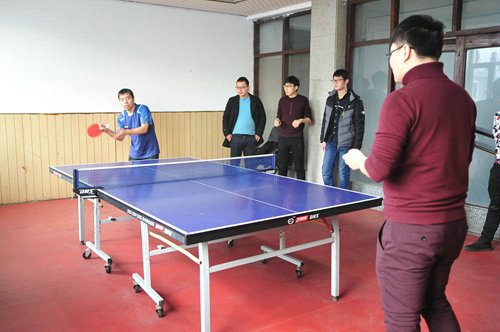 北京時(shí)間13:30分,比賽正式開始,先由大會主持人田老師宣布開場詞后,工作人員王亮對此次比賽宣讀了比賽規(guī)則,經(jīng)過抽簽分組后,比賽正式開始!乒乓球室中學(xué)員你來我往,正手切球,反手扣殺,精彩的好球一個(gè)接一個(gè);10環(huán)!9環(huán)!在報(bào)分員的一次次報(bào)分下,那隨手飛擲而出的銅標(biāo)擊打靶心的聲音不絕于耳;“哈哈哈,我這把又春天了”一個(gè)學(xué)員在出盡手中撲克牌時(shí),用微笑的表情對視著兩個(gè)略微嘆氣的對手;一記馬后炮,殺得對方丟盔棄甲,得勝學(xué)員如凱旋的將軍一般傲立楚河漢界之上。