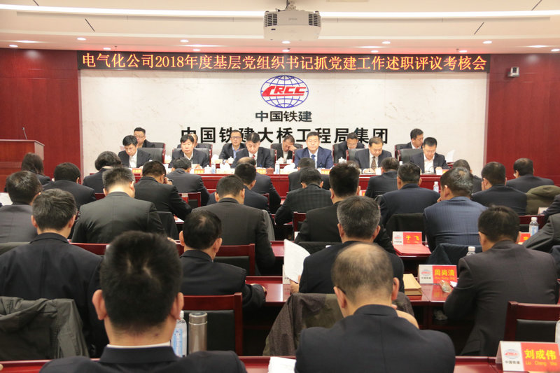 圖二、中鐵建大橋局電氣化公司2018年度基層黨組織書記抓黨建工作述職評議考核會會場