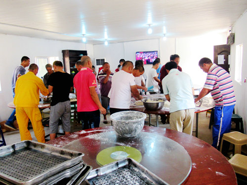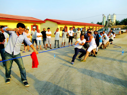 中國鐵路工程建設(shè)網(wǎng)訊(通訊員 鄭建軍)2月5日,是中國人的傳統(tǒng)節(jié)日——春節(jié)。春節(jié)來臨之際,身處尼日利亞拉伊鐵路正常施工的中鐵十二局集團一公司四分部員工,貼春聯(lián)、吃餃子、搞聯(lián)歡……彰顯著中國元素的活動和習(xí)俗一樣不少。除正常組織現(xiàn)場施工外,項目部的宿舍和辦公室門口上都貼上春聯(lián)和福字;部分中國員工主動到食堂里包起了餃子;會議室里,一片歡呼,原來這里還在進行著撲克和中國象棋的比賽;兩排宿舍的陰涼處,擺滿了各種小獎品,這是正在為套圈有獎活動做準(zhǔn)備;活動室里,乒乓球、臺球比賽正在有序進行著;操場上,拔河、羽毛球、籃球比賽已經(jīng)在如期進行……在有獎抽券中,特等獎是ipad平板電腦,吸引了眾多員工的目光。食堂門口,還擺放了各種中國風(fēng)味兒的瓜子、花生、糖果等等豐富的小吃。項目部的大院里,歡呼聲、喝彩聲、鼓掌聲,真是此起彼伏,讓人感覺到:雖然身在海外,但中國元素的春節(jié)就在身邊!