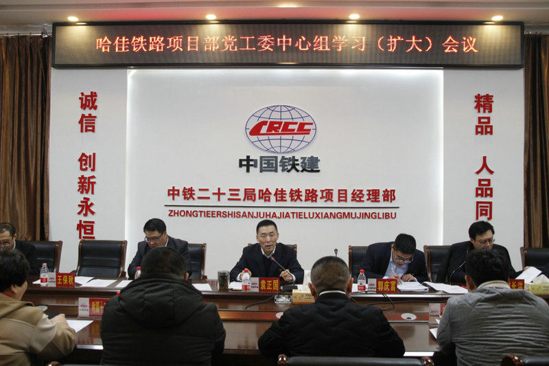 ?。ū揪W(wǎng)佳木斯訊)2月23日,中共中鐵二十三局集團(tuán)有限公司哈佳鐵路項(xiàng)目部黨工委在八樓會(huì)議室召開(kāi)了2019年第一次中心組學(xué)習(xí)(擴(kuò)大)會(huì)議,會(huì)議由黨工委書記、項(xiàng)目經(jīng)理袁正國(guó)主持。