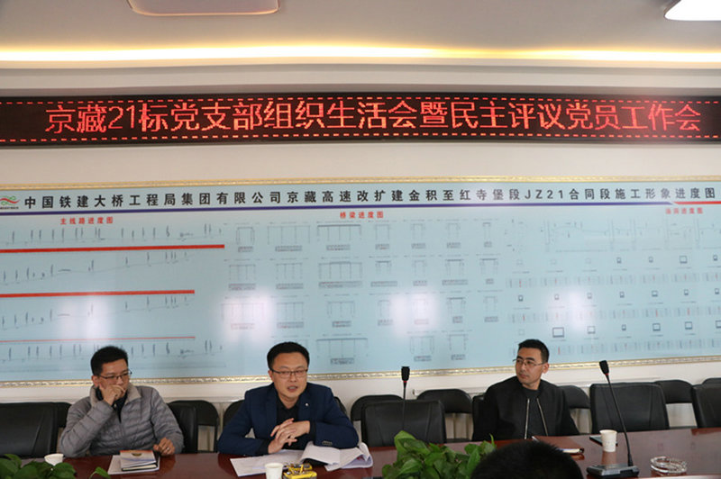 3月19日下午,中鐵建大橋工程局集團西北公司京藏21標召開2018年度黨支部組織生活會。項目黨建工作聯(lián)系點領(lǐng)導、公司副總經(jīng)理姜喜東,黨群工作部部長史少龍,紀檢監(jiān)察部部長、團委書記高健華到會督導,會議由項目黨支部副書記劉德舉主持召開。