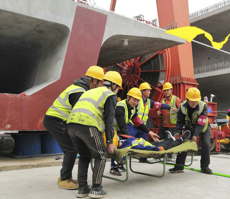 本次演練模擬以一名操作工人在使用電動扳手發(fā)生觸電事故為背景,操作工人手臂電傷,昏迷不醒,需要緊急救援。事故發(fā)生后,架梁分部啟動應急預案,成立由安質部、工程部、物機部、辦公室等人員組成的觸電事故應急小組,設立警戒線,進行醫(yī)療救助、事故調查等工作。最終,有效的處理了此次觸電突發(fā)事件,保障了工人生命安全。