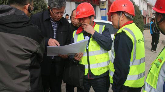 圖為項目部副經(jīng)理羅云、副總工陳安民在現(xiàn)場陪同檢查。