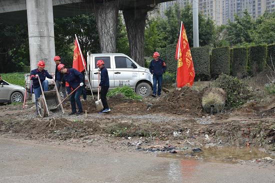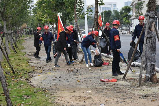 3月9日,在項目部集體學習雷鋒感人事跡后,項目人員迎著微雨,踏著晨露,來到街邊花園清掃垃圾。園中春意盎然,只是隨處可見的垃圾卻破壞了滿園春色。為凈化花園環(huán)境,還周邊居民一個整潔的休閑娛樂場所,項目人員帶著掃把、垃圾袋,對園里各類垃圾進行了清理。整齊的著裝,井然有序地清掃,引得行人駐足觀望,并投來贊嘆的目光。因數(shù)日小雨連綿,加之行人眾多,所經之路有幾段已是泥濘不堪。項目人員又運來砂石,填坑補路。下班時間,工地的路口交通繁忙擁堵,在交警允許下,由項目專業(yè)人員協(xié)助指揮交通,保障了居民出行的安全與效率。