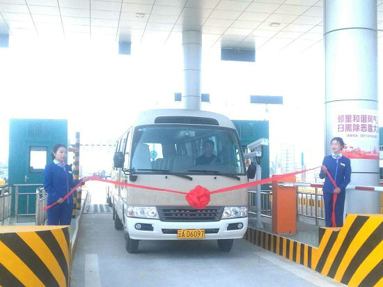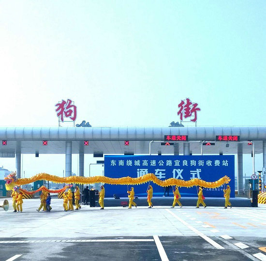 云南昆明市宜良縣在狗街收費站舉行通車儀式