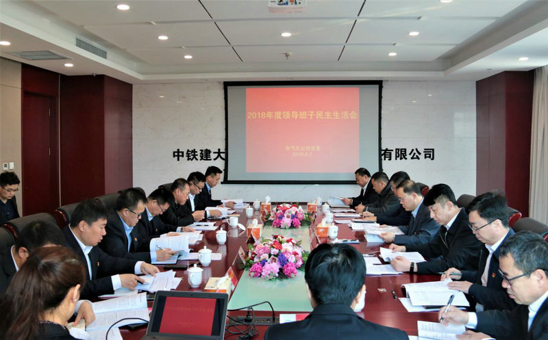 圖為中鐵建大橋局電氣化公司2018年度領(lǐng)導(dǎo)班子民主生活會現(xiàn)場
