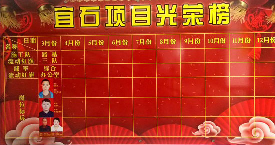 值得一提的是,自啟動流動紅旗評比活動以來,為本就處于大干高潮的項目再次“添柴加薪”。施工隊伍現(xiàn)場文明施工標準、安全防范意識和物資設(shè)備保管意識顯著提高。此外,宜石高速項目還針對項目中存在的共性和個性問題分別“對癥下藥”,以不同的形式積極探索基層項目管理新經(jīng)驗。