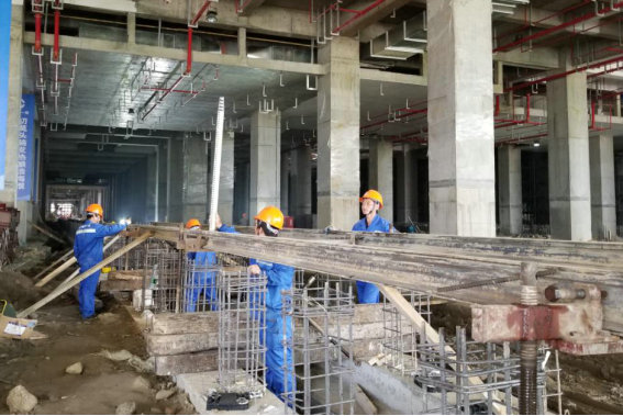 運用庫內(nèi)首條柱式檢查坑軌道架設(shè)