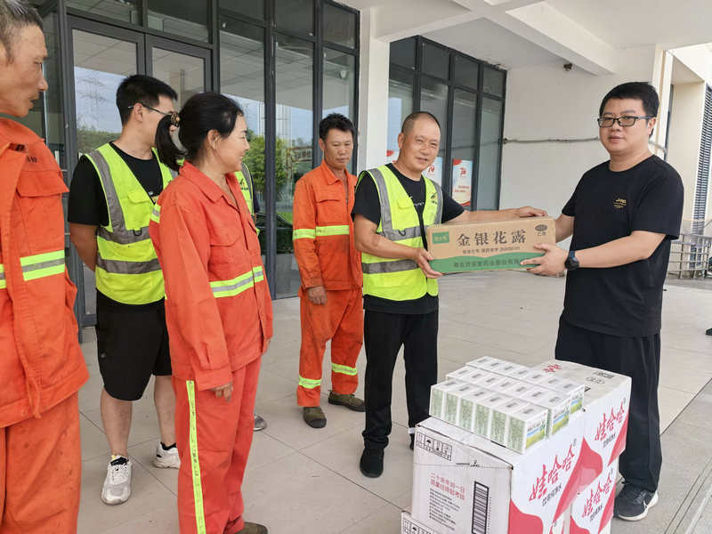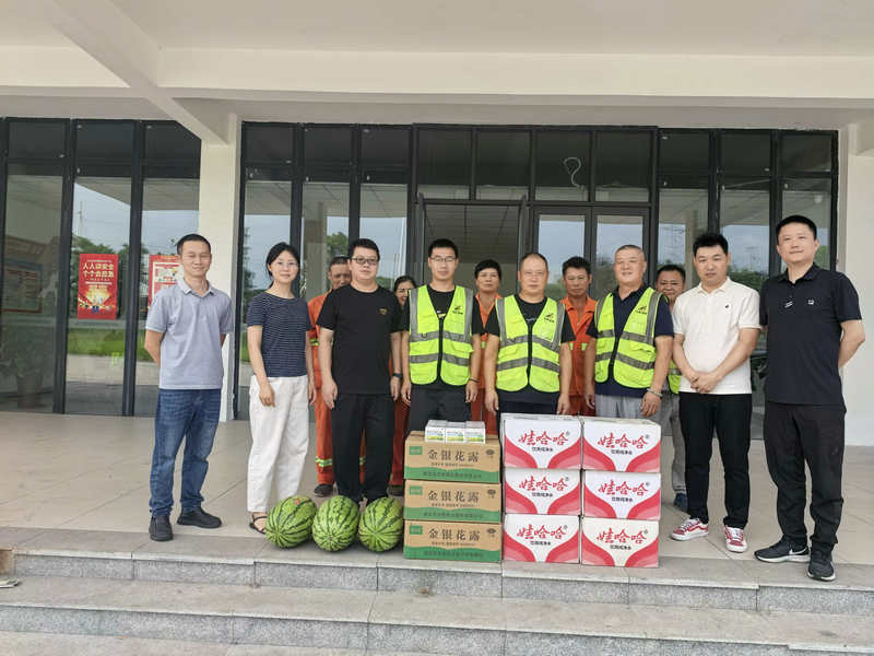 活動現(xiàn)場,公司管理人員與養(yǎng)護單位管理人員、一線養(yǎng)護工人親切交流,詳細詢問工作、生活情況,對他們不懼高溫、堅守崗位的奉獻精神表示感謝,并反復叮囑大家要增強自我保護意識,科學防暑降溫,確保工作安全。并結合高溫作業(yè)實際,精心準備了藿香正氣水、礦泉水、金銀花露和清甜西瓜等防暑降溫物品,確保養(yǎng)護工人及時補充水分、緩解暑熱。同時,叮囑養(yǎng)護單位現(xiàn)場管理人員在高溫天氣提供綠豆湯,清香沁人,嚴格落實高溫作業(yè)安全措施確保員工身體健康與生產(chǎn)安全“兩不誤”。
