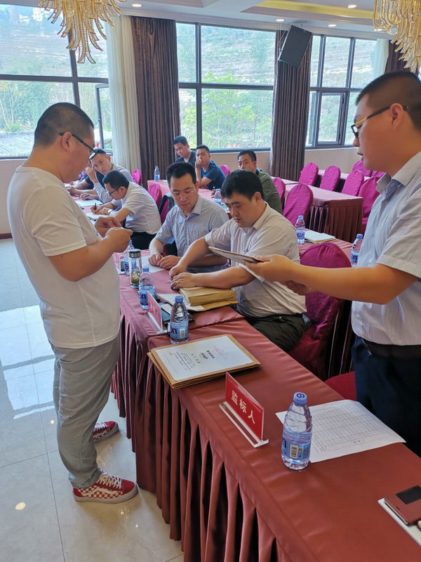 圖為供應(yīng)商向評(píng)委遞交招標(biāo)文件 據(jù)了解,仁沐新高速公路LJ16標(biāo)項(xiàng)目部共需采購彩鋼房5000平方米、輕鋼料棚1.77萬平方米、全封閉圍擋9000平方米,共需700多萬元。通過各供應(yīng)商報(bào)價(jià)、產(chǎn)品質(zhì)量、評(píng)標(biāo)篩選打分,項(xiàng)目部優(yōu)中選優(yōu),擬確定兩家供應(yīng)商為中標(biāo)單位。