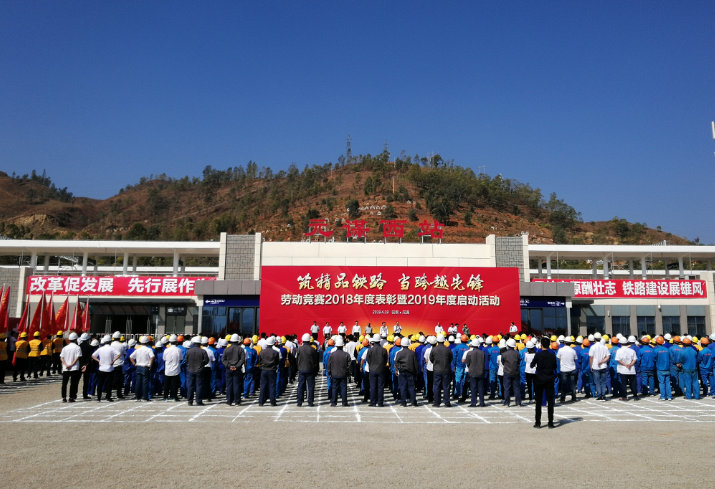4月19日,云南省人民政府、云南省總工會(huì)在云南永廣鐵路元謀西站舉行“筑精品鐵路 當(dāng)跨越先鋒”勞動(dòng)競(jìng)賽2018年度表彰暨2019年度啟動(dòng)儀式。中鐵二十一局集團(tuán)公司副總經(jīng)理趙春鋒,玉磨鐵路項(xiàng)目部經(jīng)理柴穎鵬代表20家獲獎(jiǎng)單位參加相關(guān)活動(dòng)。