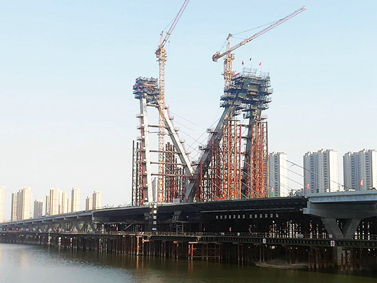 壽春西路橋工程全長1.033公里,橋梁總長845米,跨越淠河,是六安市東西主干道上的重要工程,也是六安市標(biāo)志性地標(biāo)建筑。主橋長178米,為“V”型塔雙索面斜塔斜拉橋,主梁為鋼砼混合梁結(jié)構(gòu),引橋為30米小箱梁結(jié)構(gòu)。截止目前,主橋副塔已實現(xiàn)混凝土合龍,主塔進(jìn)行混凝土合龍段施工,全橋橋面已經(jīng)貫通。