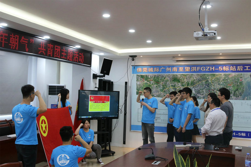 儀式上,于沁向佛莞項目團工委書記黃學(xué)宇進行了授旗,隨后青年團員們集體宣誓,決心不斷提高自身素質(zhì),展示青年風采,創(chuàng)一流業(yè)績,樹央企品牌,為國家經(jīng)濟建設(shè)奉獻青春!