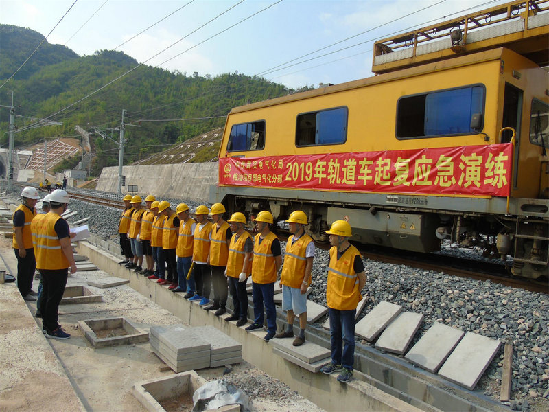 根據(jù)《生產(chǎn)安全事故應(yīng)急條例》中相關(guān)規(guī)定及集團(tuán)公司、城市建設(shè)分公司要求,梅汕項(xiàng)目部電氣化分部聯(lián)合機(jī)械設(shè)備中心第一機(jī)械隊(duì)于4月24日上午在在湯南隧道進(jìn)口軌道車停放點(diǎn)處進(jìn)行了《軌道車脫線起復(fù)應(yīng)急預(yù)案》培訓(xùn)與演練活動(dòng)。