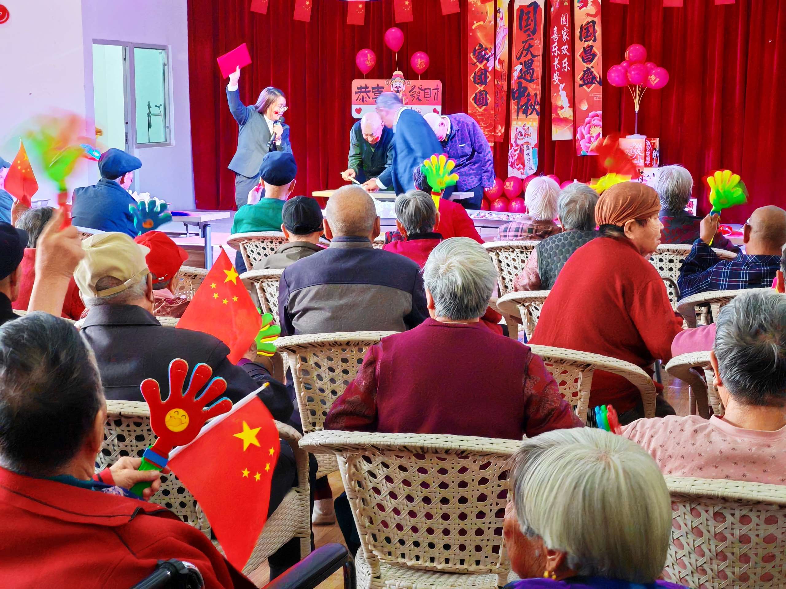 活動現(xiàn)場,沒有華麗的舞臺,卻有最真摯的互動。工作人員與老人們圍坐在一起,玩起了懷舊小游戲,從“搶月餅”到“猴子撈月”,爺爺奶奶們積極參與,不時傳來陣陣笑聲;有才藝的爺爺奶奶主動登臺,唱起經(jīng)典紅歌、念起傳統(tǒng)詩詞,熟悉的旋律與真摯的情感感染著在場每一個人。午后時光里,大家圍坐在桌前打牌聊天,聊聊家常、說說過往,偶爾穿插著對祖國發(fā)展的感慨,氛圍熱鬧又溫馨。