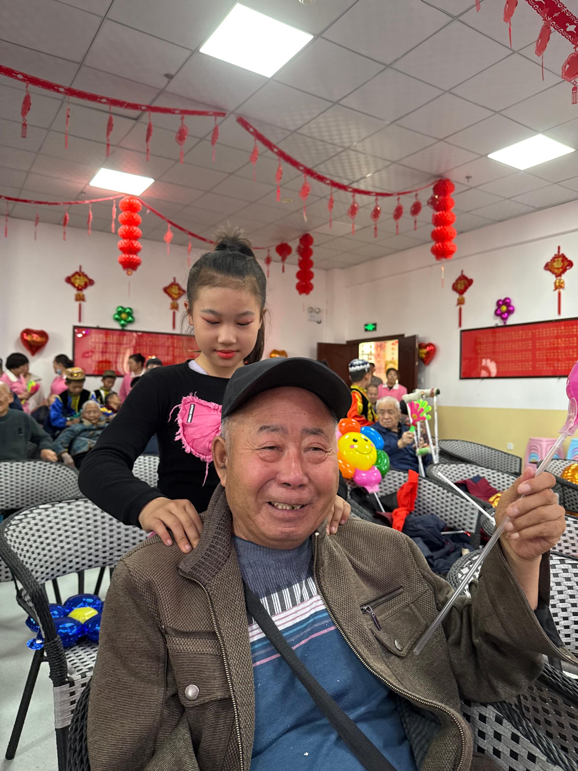 表演結(jié)束后,孩子們化身“小小暖心天使”,主動(dòng)走到爺爺奶奶身邊,輕聲詢問身體狀況,然后小心翼翼地為他們捏肩、捶背。“爺爺,這個(gè)力度您覺得舒服嗎?”“奶奶,您肩膀這里酸不酸?”孩子們溫柔的話語和輕柔的動(dòng)作,像一股暖流涌入長(zhǎng)者們的心田。與此同時(shí),新湖總廠小學(xué)的師生代表還將精心準(zhǔn)備的慰問品一一送到長(zhǎng)者手中,每一份慰問品都承載著對(duì)長(zhǎng)輩的尊敬與關(guān)愛,讓長(zhǎng)者們?cè)谥仃?yáng)佳節(jié)感受到了濃濃的暖意。