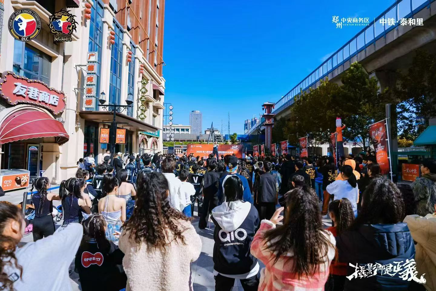 活動先后開展了“小潮之星”“大河少年”主題個人作品展演、團體齊舞比賽,同步舉辦了CHUC青少年街舞國家隊河南省隊選拔?;顒悠陂g,中鐵?泰和里“唐宋夢華”“火車公園”特色區(qū)域化身街舞競技與展示平臺,各地青少年舞者以舞會友、展現(xiàn)風(fēng)采。泰和里獨特的建筑風(fēng)貌、沉浸式文化場景與開放包容的街區(qū)精神,與街舞文化“自由、創(chuàng)新、表達”的內(nèi)核高度契合,其多元空間格局不僅為這場國際潮流文化活動提供優(yōu)質(zhì)場地,更讓現(xiàn)場觀眾獲得“一步一景、移步換景”的沉浸式觀賽體驗。