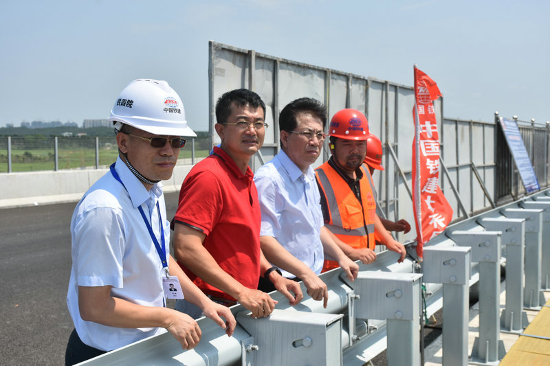 近日,海南省交通廳姚建勇副廳長到中國鐵建大橋局一公司文瓊高速路面2標(biāo)調(diào)研,海南省交建局李邦武副局長、中鐵四院代建指揮部何暉指揮長、中國鐵建大橋局文瓊高速路面2標(biāo)項(xiàng)目經(jīng)理王東輝陪同調(diào)研。