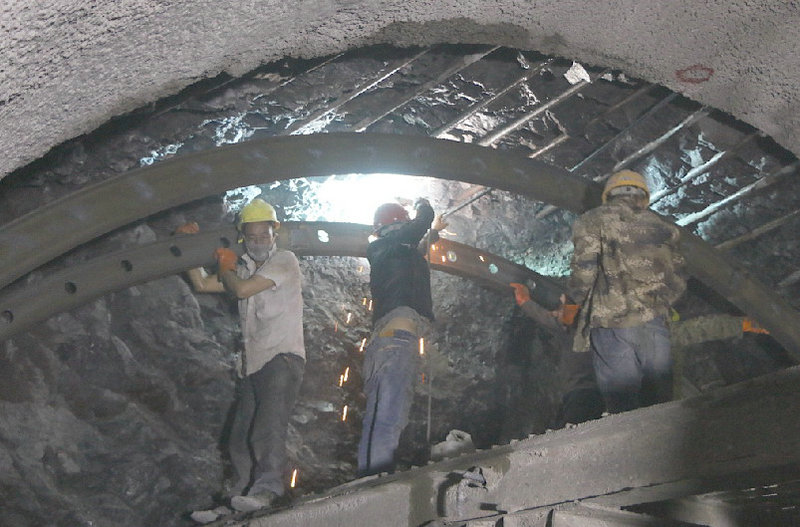 在狠抓工序銜接的同時,李光松還根據(jù)隧道掌子面圍巖情況,及時對超前地質(zhì)預(yù)報、圍巖量測數(shù)據(jù)進(jìn)行分析,在加大超前超強(qiáng)支護(hù)力度、水玻璃與水泥混合注漿、確保掌子面和山體圍巖穩(wěn)定的情況下,大膽采用臺階法施工、預(yù)留核心土和快開挖、快支護(hù)、快封閉、快成環(huán)的施工工藝,不僅保證了施工中的質(zhì)量安全,還加快了各道工序循環(huán),使黃山哨隧道出口自今年以來,月月超額完成節(jié)點(diǎn)計劃,并在5月份創(chuàng)造了該隊(duì)上場以來Ⅴ類圍巖掘進(jìn)79米的施工記錄。