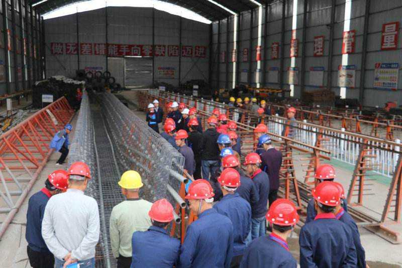 觀摩團(tuán)首先來到張扁高速公路項目預(yù)制梁場,項目部總工結(jié)合現(xiàn)場成品預(yù)制梁講解了箱梁質(zhì)量控制要點,包括箱梁鋼筋綁扎、鋼筋保護(hù)層厚度、合模質(zhì)量、封端、鑿毛、張拉壓漿等質(zhì)量規(guī)范;隨后觀摩團(tuán)在項目部的帶領(lǐng)下,來到項目K64+600-K67+700段路基、涵洞進(jìn)行觀摩,項目部總工對路基質(zhì)量控制要點和橋涵施工質(zhì)量控制要點進(jìn)行了講解。