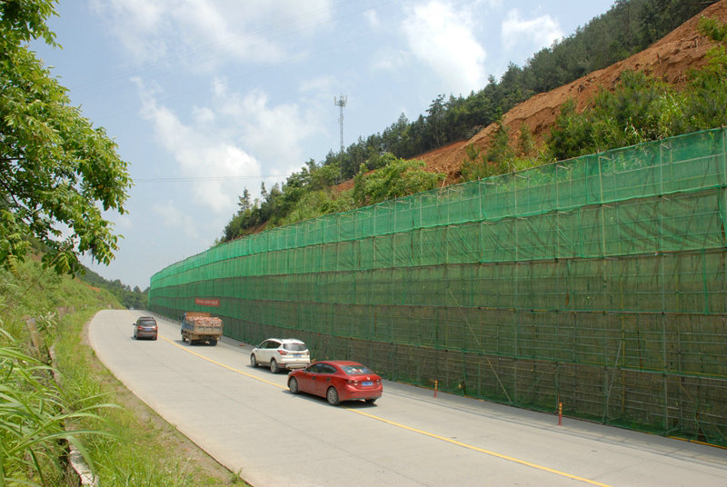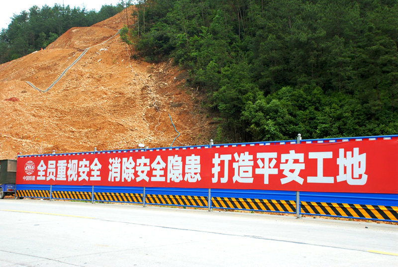 該項(xiàng)目安全工作在黨政齊發(fā)力、加強(qiáng)進(jìn)場人員安全教育培訓(xùn)、配發(fā)安全防護(hù)背心、開展安康杯競賽活動、安裝曝閃燈、推行一法三卡工作法的基礎(chǔ)上,投資數(shù)十萬元安裝防護(hù)圍欄,解決道路兩側(cè)橋涵、路基施工安全難題。全標(biāo)段先后安裝安全防護(hù)圍欄2000米,大部分地段圍欄結(jié)構(gòu)為鋼管立柱和藍(lán)色鐵皮,在高邊坡開挖處安裝9米高的雙層腳手架,內(nèi)貼竹籬笆,外掛綠色防護(hù)網(wǎng),具備較強(qiáng)的抗風(fēng)、抗撞能力。與此同時,在圍欄上懸掛、張貼100多條安全警示、提醒標(biāo)語標(biāo)識、發(fā)光條,對過往車輛及行人和施工人員起到重視安全、克服麻痹、僥幸心理的作用。其次,由專兼職安全員不定期對圍欄的穩(wěn)固性進(jìn)行排查,發(fā)現(xiàn)有變形、傾斜等情況,及時報告現(xiàn)場的安全總監(jiān)派人進(jìn)行處理。