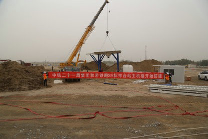 6月4日上午,隨著一聲聲的鞭炮響起,中鐵二十一局四公司新疆和若鐵路項目部拌合站主機樓開始搭建。