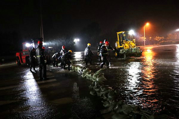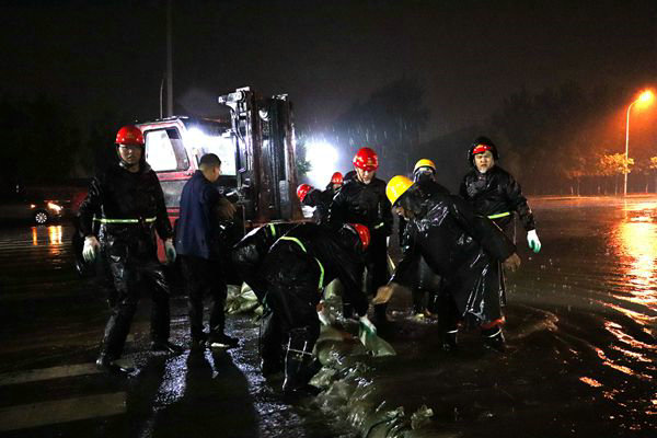 道路積水越來越深,處理不好將直接影響基坑安全,好在項(xiàng)目部對(duì)防汛應(yīng)急物資準(zhǔn)備充分,防汛措施得力,人員到位,使搶險(xiǎn)工作達(dá)到了忙而不亂的效果。在汽車公園站北區(qū),只見裝載機(jī)在大雨中來回穿梭,盾構(gòu)工區(qū)經(jīng)理劉漢洲、李原在現(xiàn)場帶領(lǐng)搶險(xiǎn)隊(duì)員不停的裝沙袋、碼沙袋,質(zhì)檢部部長汲生財(cái)一邊負(fù)責(zé)指揮環(huán)島的搶險(xiǎn),一邊協(xié)調(diào)指揮汽車公園站的搶險(xiǎn)隊(duì)員。工區(qū)經(jīng)理蘇曉亮帶領(lǐng)30多名搶險(xiǎn)隊(duì)員奮戰(zhàn)在捷達(dá)大路站。尤其讓人感動(dòng)的是,駐地監(jiān)理工程師車振宇、李紅成等同志也和搶險(xiǎn)隊(duì)員一起并肩戰(zhàn)斗在搶險(xiǎn)現(xiàn)場,他們這種對(duì)工作認(rèn)真負(fù)責(zé)的態(tài)度和無私奉獻(xiàn)的精神,極大地鼓舞著每個(gè)搶險(xiǎn)隊(duì)員的士氣。在搶險(xiǎn)過程中,有的隊(duì)員雨鞋被水灌滿了、衣服濕透了,但是,卻自始至終沒有一個(gè)退縮的。