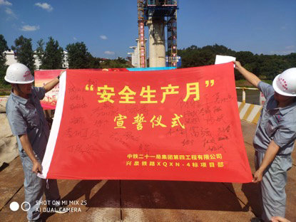近日,中鐵二十一局四公司興泉鐵路4標項目部全體職工在琴江特大橋舉行了2019年“安全生產月”及“安全生產萬里行”活動宣誓及簽字儀式。