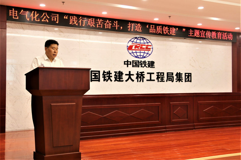 圖一、中鐵建大橋局電氣化公司黨委副書記、工會主席姚金立代表公司黨委發(fā)出倡議