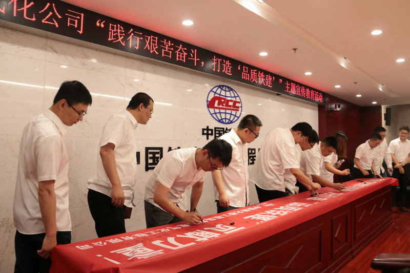 為進(jìn)一步提高黨員領(lǐng)導(dǎo)干部黨性修養(yǎng),加強干部隊伍作風(fēng)建設(shè),弘揚企業(yè)正風(fēng)正氣,推動企業(yè)發(fā)展目標(biāo)順利實現(xiàn),根據(jù)集團(tuán)公司要求,結(jié)合公司實際,中鐵建大橋局電氣化公司積極謀劃部署,在公司機關(guān)開展了“踐行艱苦奮斗,打造‘品質(zhì)鐵建’”主題宣傳教育活動。通過合唱企業(yè)歌曲《鐵道兵志在四方》,感知艱苦激情的歲月,牢記鐵道兵精神,再出發(fā),一線立新功;觀看紀(jì)錄片《永遠(yuǎn)的焦裕祿》,重溫焦裕祿同志是如何為了黨的事業(yè)、為了人民的幸福,為了改變蘭考貧窮落后的面貌,實現(xiàn)著一個共產(chǎn)黨員的錚錚誓言;開展朗讀分享會,通過朗讀《我的父親焦裕祿》《焦裕祿精神》等書籍,就自己如何弘揚焦裕祿精神,為打造“品質(zhì)鐵建”貢獻(xiàn)力量,交流分享了心得感受;組織廉潔教育,開展專題講座,要求大家嚴(yán)格落實“八項規(guī)定”,始終牢記“兩個務(wù)必;發(fā)出倡議書,號召大家,學(xué)習(xí)焦裕祿精神,明辨“大道理”,鉆研“大學(xué)問”,擔(dān)當(dāng)“大事業(yè)”;進(jìn)行主題簽名活動,簽下自己對踐行艱苦奮斗精神的莊嚴(yán)承諾,從自身做起,從點滴做起,做現(xiàn)在做起,為打造“品質(zhì)鐵建”貢獻(xiàn)自己的力量。