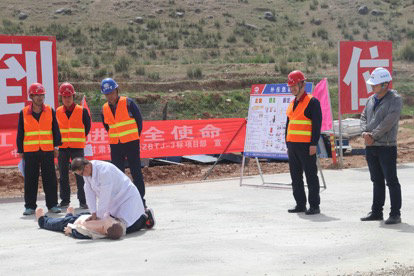 演練前首先由民樂縣中醫(yī)院醫(yī)護人員為全體參演人員講解心肺復蘇、傷員緊急處理等現(xiàn)場急救常識,隨后依次開展了高處墜落、機械傷害應急演練,演練過程中,各小組成員各司其職,緊密配合,最大程度的模擬了真實事故應急救援。演練結束后,由項目經(jīng)理張高放對本次演練進行了總結,他強調(diào):本次演練雖然結束,但全體管理人員決不能放松安全管理工作,我們要以目前開展的“安全生產(chǎn)月”活動為契機,扎實有效地開展問題隱患排查和整治工作,使項目部的安全管理工作上一個新臺階。最后,由總監(jiān)辦領導及項目公司領導分別對本次演練進行了點評。