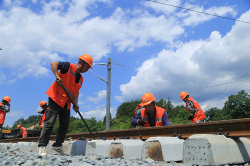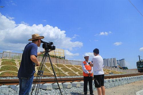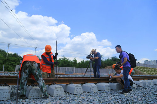 (李艷春 譚帥 高明)6月13日下午,重慶日報(bào)社、重慶黔江區(qū)電視臺(tái)媒體記者頂著炎炎烈日來到中鐵一局新運(yùn)黔張常項(xiàng)目部人工鋪軌現(xiàn)場,對目前政府及廣大市民普遍關(guān)心的在建黔張常鐵路進(jìn)行了重點(diǎn)采訪報(bào)道。