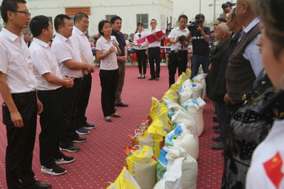 節(jié)目中間,且末縣黨委宣傳部、三十七團(tuán)黨委常委、中鐵二十一局四公司和若鐵路項(xiàng)目部為貧困村民代表發(fā)放了米、面、油等慰問品,讓村民們真真切切感受到黨和國家的溫暖。