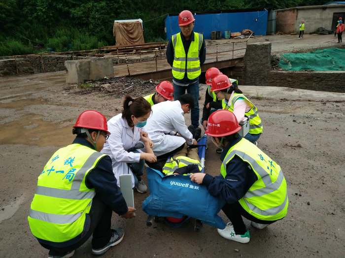 對(duì)傷員的應(yīng)急救援演練 此次演練是模擬平天PTKZJL1標(biāo)段關(guān)山進(jìn)口突降暴雨,施工隊(duì)駐地上游河水流量激增,突發(fā)洪水,部分房屋沖毀,即將淹沒(méi)關(guān)山進(jìn)口施工隊(duì)駐地及進(jìn)口隧道施工現(xiàn)場(chǎng),項(xiàng)目應(yīng)急救援領(lǐng)導(dǎo)小組迅速啟動(dòng)應(yīng)急預(yù)案,立即開(kāi)展救援工作。演練分預(yù)警報(bào)告、集合分工、排除險(xiǎn)情和匯報(bào)總結(jié)四步進(jìn)行,全體員工及勞務(wù)人員分成搶險(xiǎn)救援、善后處理、警戒保衛(wèi)、通訊聯(lián)絡(luò)、醫(yī)療救援和物資保障等六個(gè)小組。參加演練人員按照預(yù)案,服從指揮、各司其職、密切配合,保證了防洪防汛應(yīng)急演練活動(dòng)順利完成。