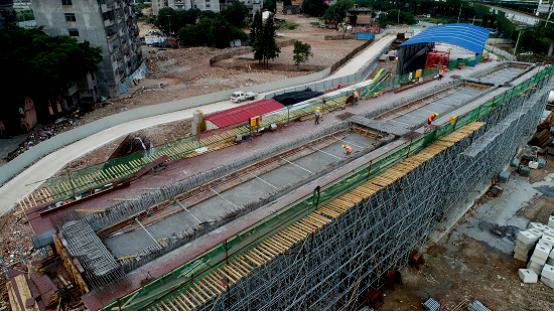 6月14日下午16時(shí),隨著最后一方混凝土的灌注,中鐵建大橋工程局一公司福州二環(huán)項(xiàng)目E匝道首聯(lián)現(xiàn)澆梁混凝土澆筑完成,圓滿實(shí)現(xiàn)了預(yù)期目標(biāo),為G、H匝道施工奠定良好的開端。